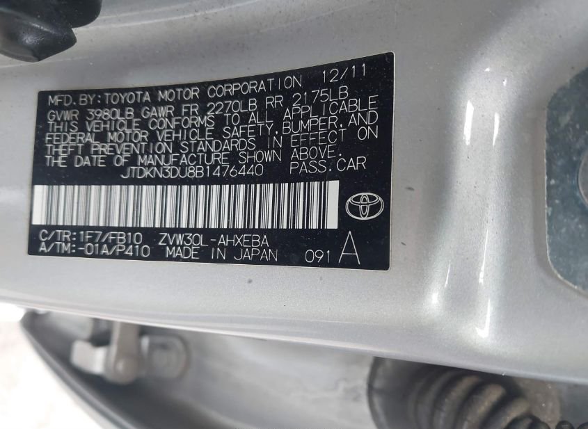 - VIN: JTDKN3DU8B1476440