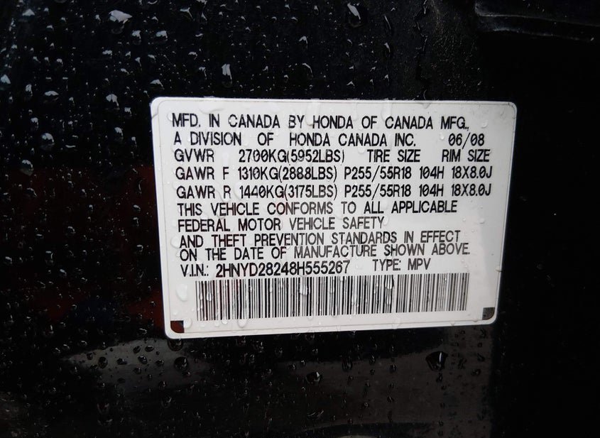 - VIN: 2HNYD28248H555267