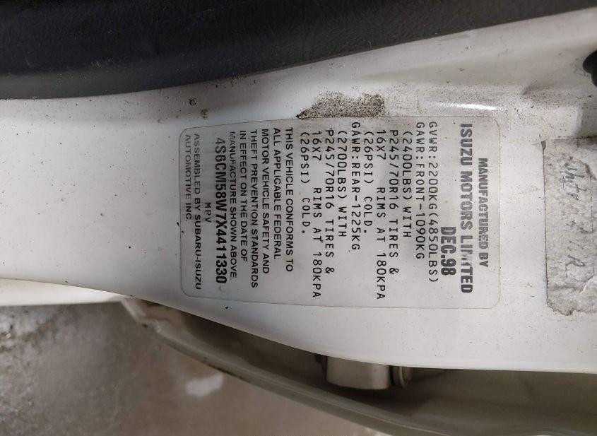 - VIN: 4S6CM58W7X4411330