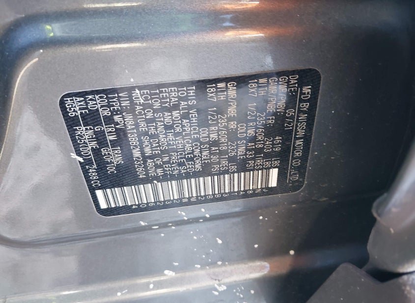 - VIN: JN8AT3BB2MW232604