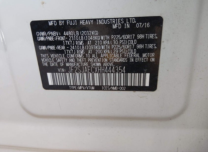 - VIN: JF2SJAECXHH444354