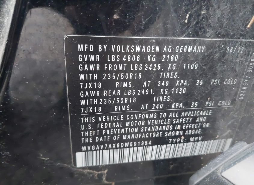 - VIN: WVGAV7AX8DW501954