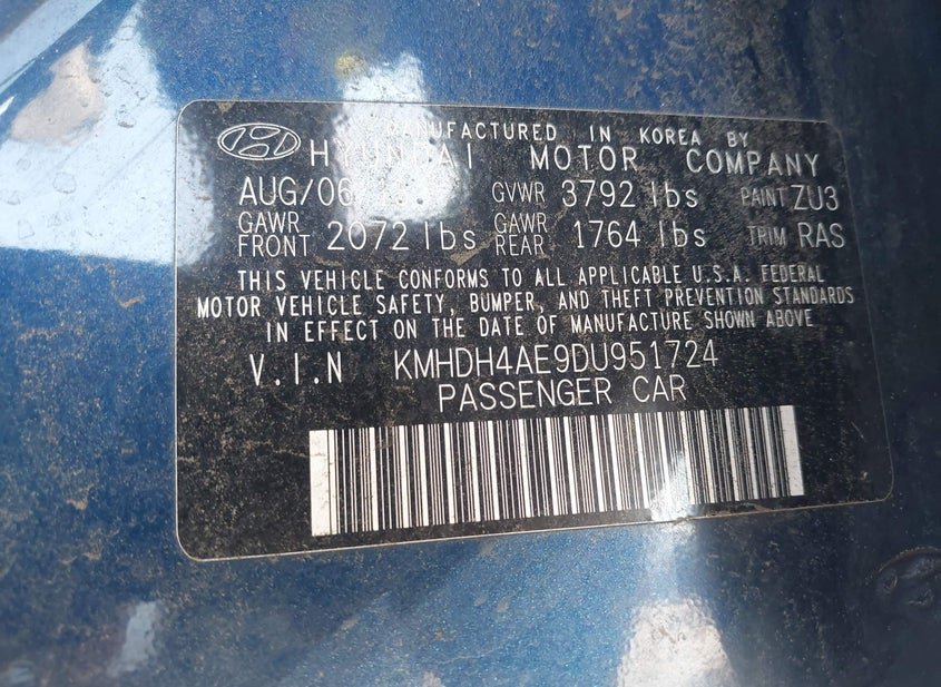 - VIN: KMHDH4AE9DU951724