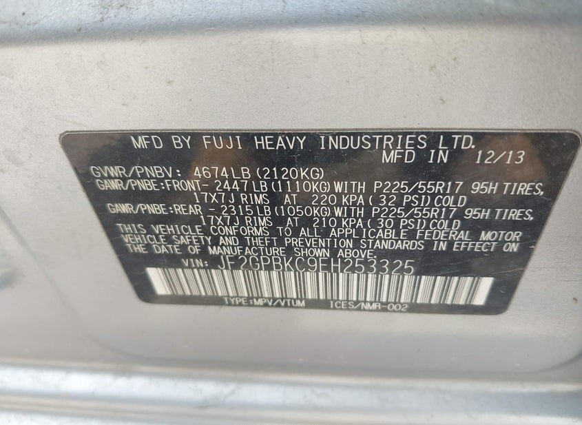 - VIN: JF2GPBKC9EH253325