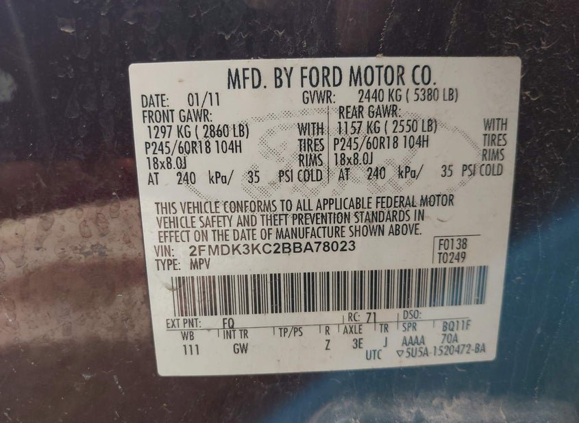 - VIN: 2FMDK3KC2BBA78023