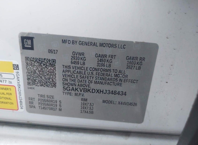 - VIN: 5GAKVBKDXHJ348434