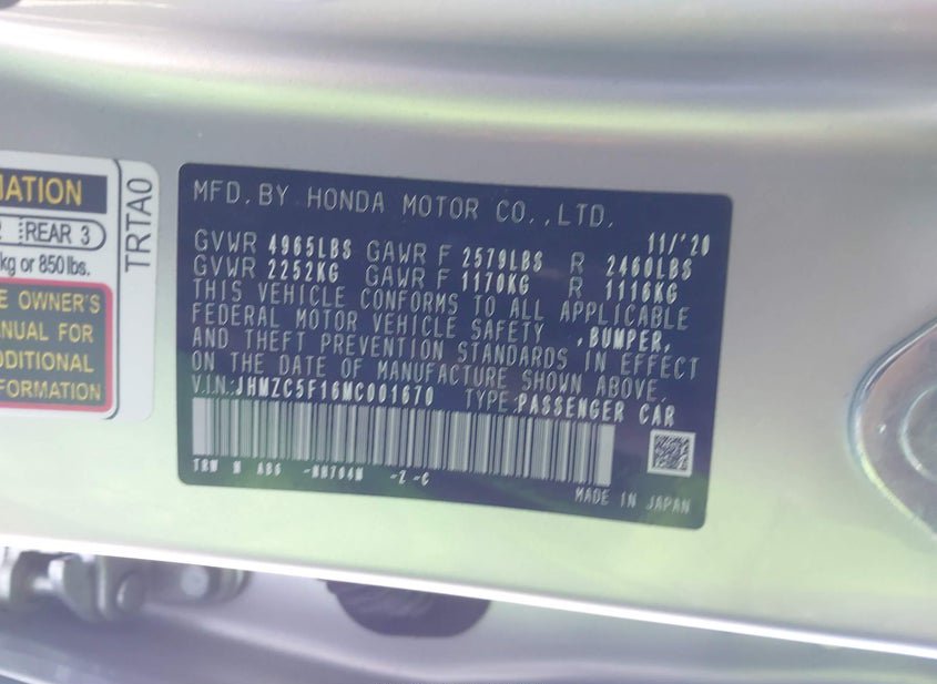 - VIN: JHMZC5F16MC001670