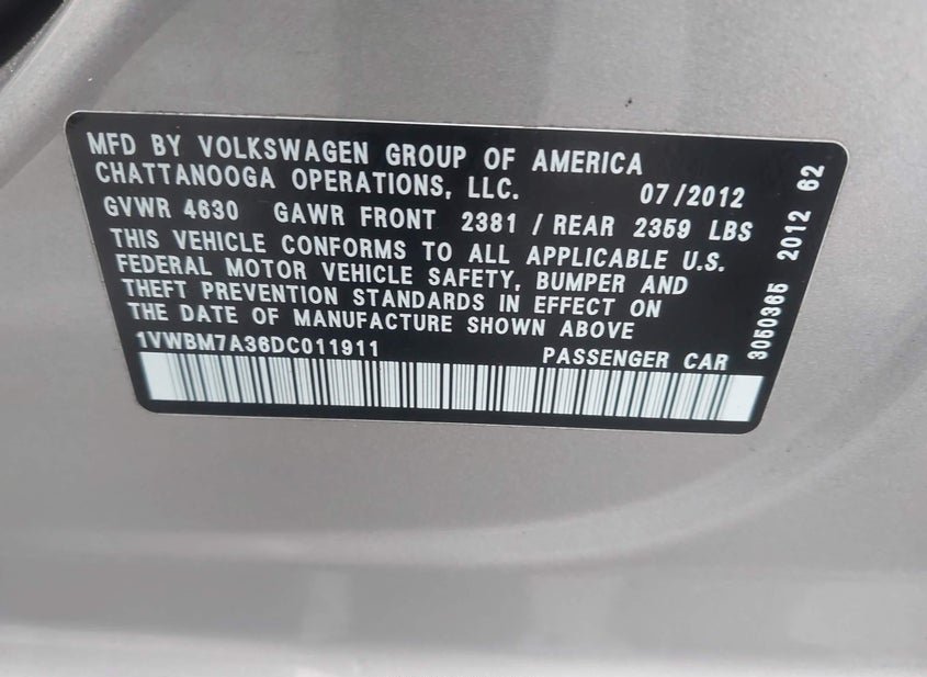 - VIN: 1VWBM7A36DC011911