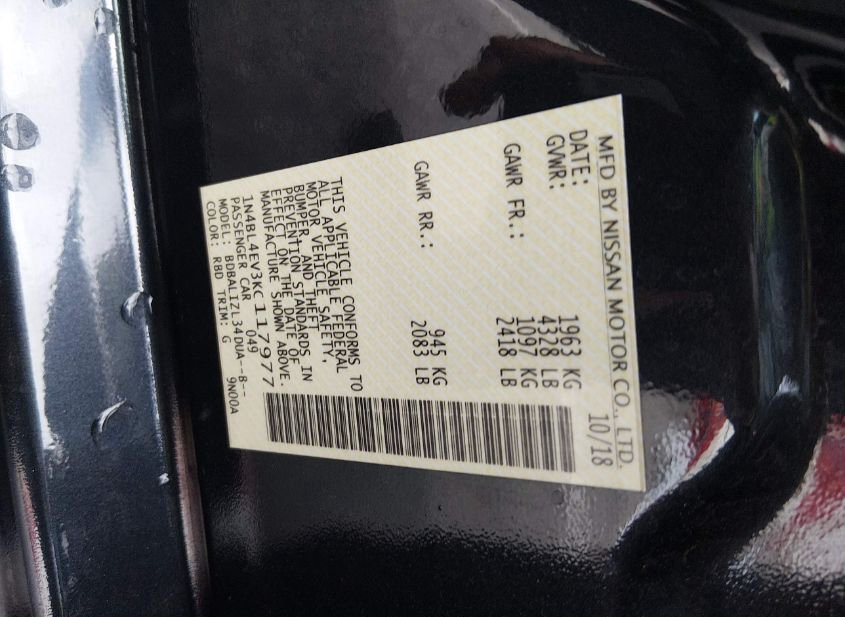 - VIN: 1N4BL4EV3KC117977
