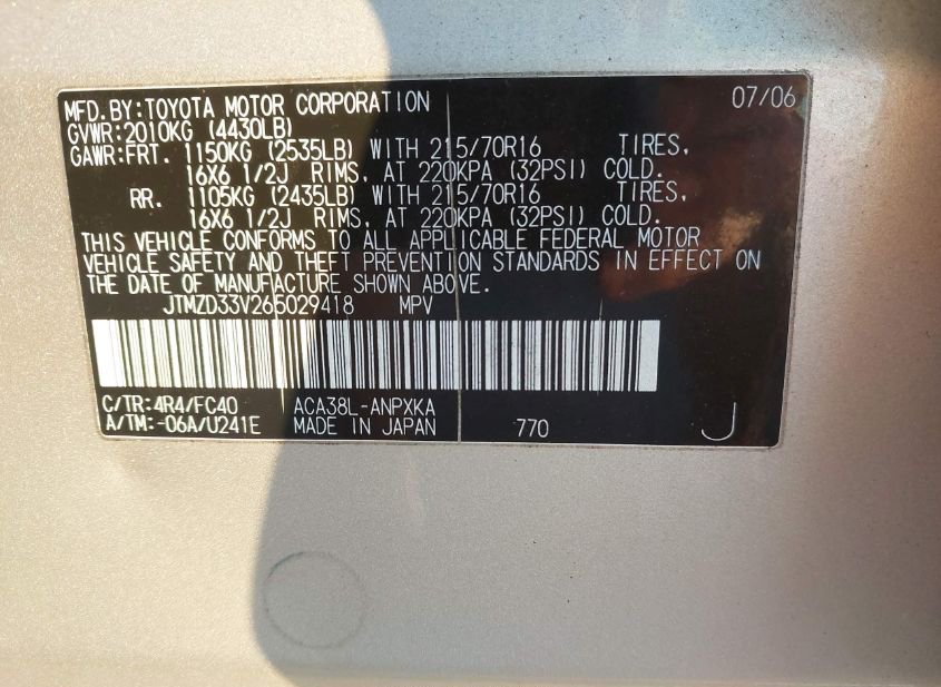 - VIN: JTMZD33V265029418
