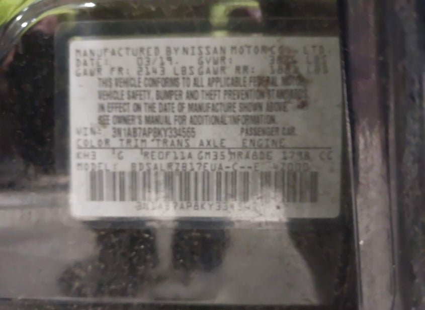 - VIN: 3N1AB7AP8KY334565