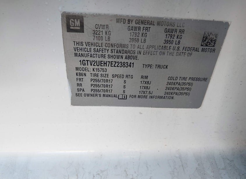 - VIN: 1GTV2UEH7EZ238341