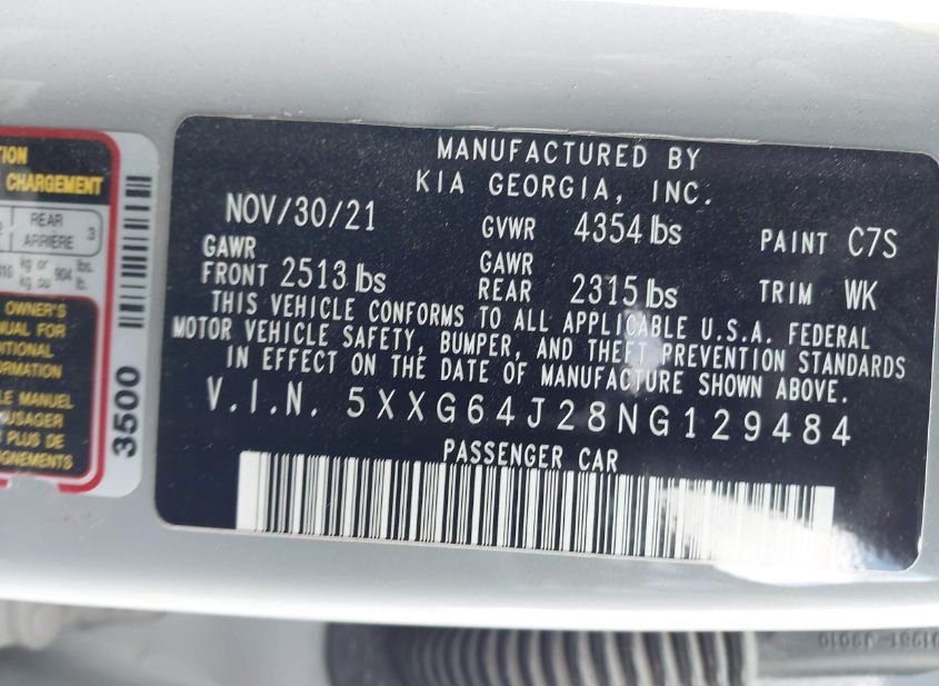 - Название лота: 2022 KIA K5 GT-LINE