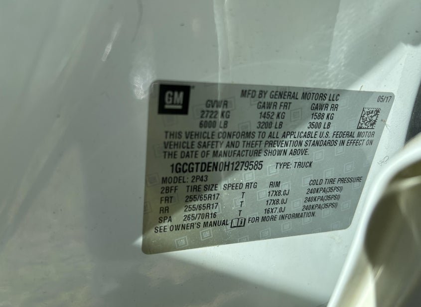 - VIN: 1GCGTDEN0H1279585