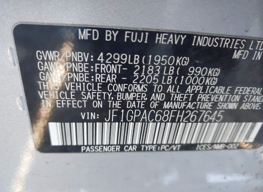 - VIN: JF1GPAC68FH267645