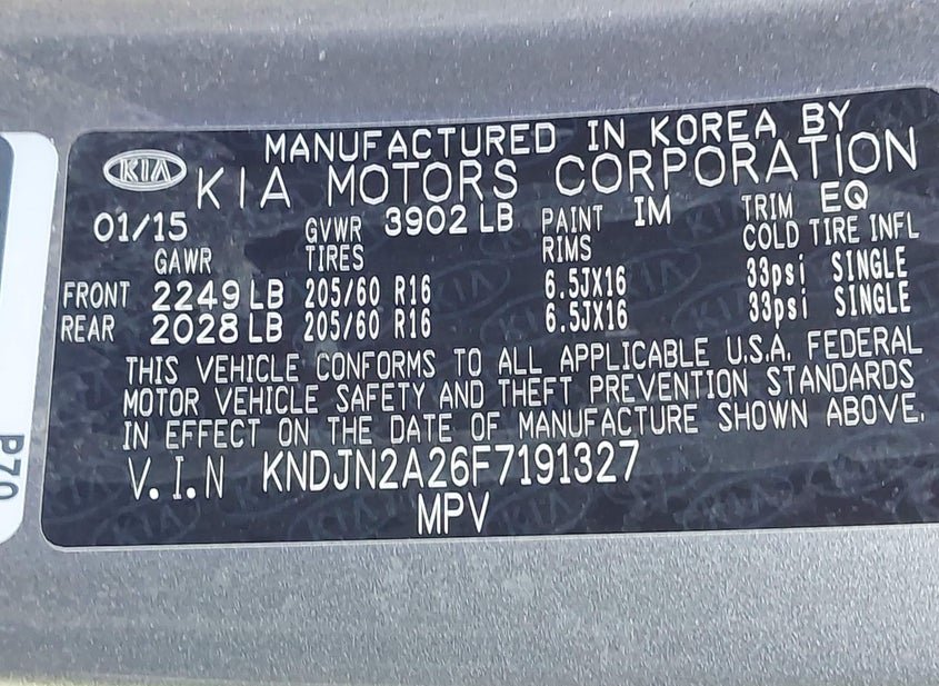 - VIN: KNDJN2A26F7191327