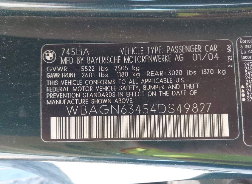 - Название лота: 2004 BMW 745LI