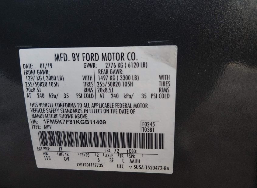 - VIN: 1FM5K7F81KGB11409
