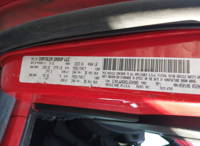 - VIN: 1C4AJWAG0DL654985