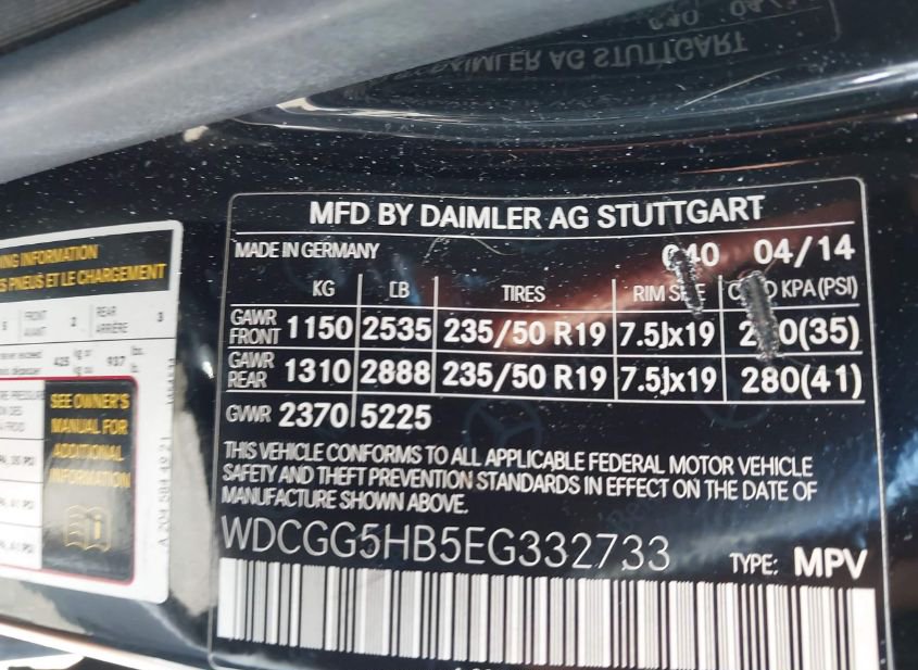 - VIN: WDCGG5HB5EG332733
