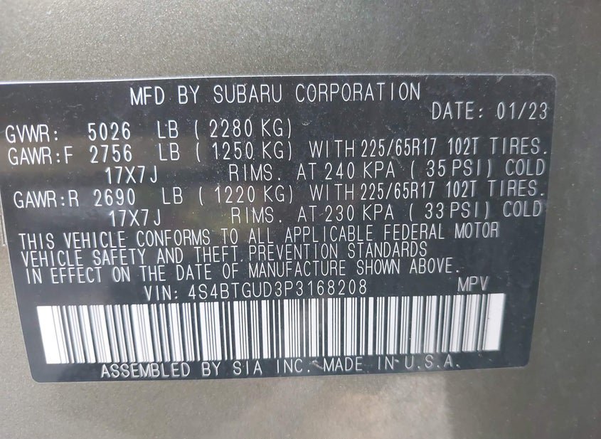 - VIN: 4S4BTGUD3P3168208