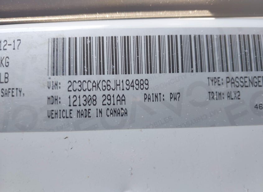 - VIN: 2C3CCAKG6JH194989