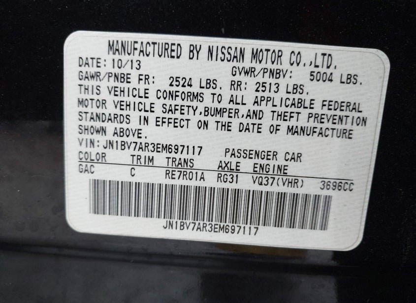 - VIN: JN1BV7AR3EM697117
