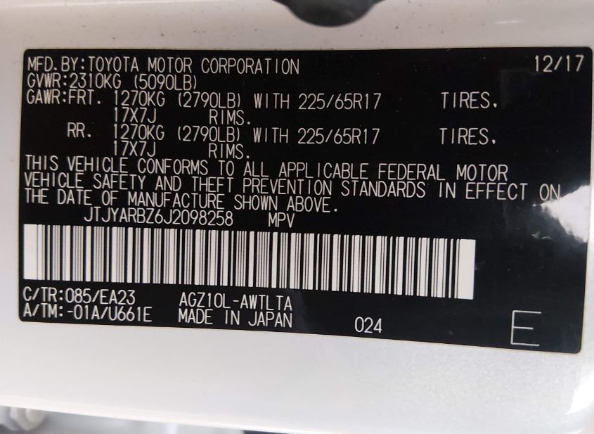 - VIN: JTJYARBZ6J2098258