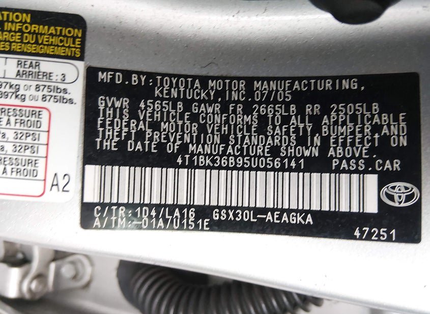 - VIN: 4T1BK36B95U056141