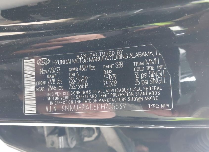 - VIN: 5NMJF3AE6PH205539
