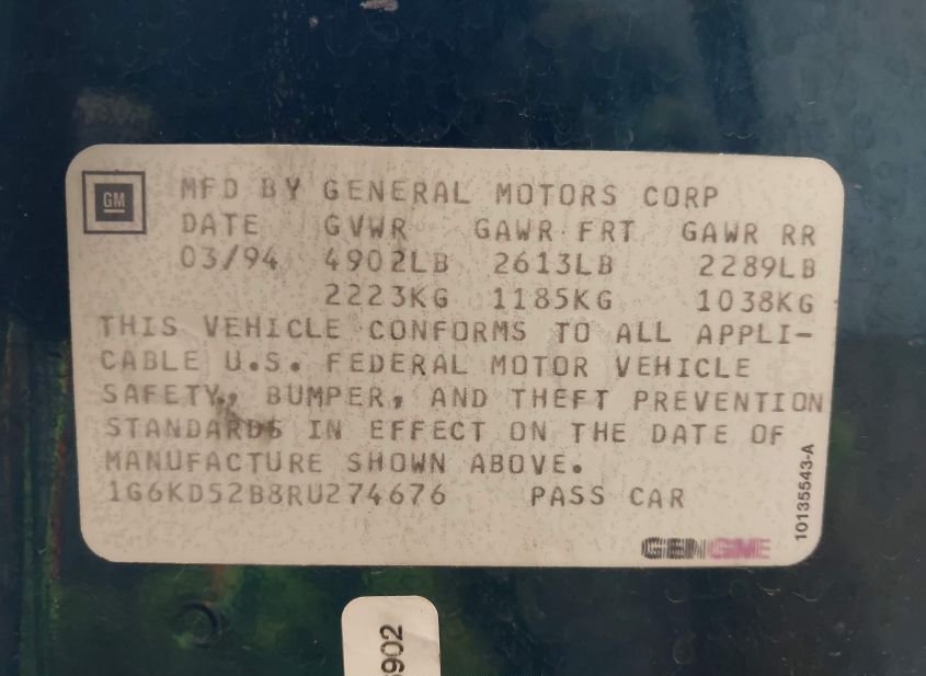 - VIN: 1G6KD52B8RU274676