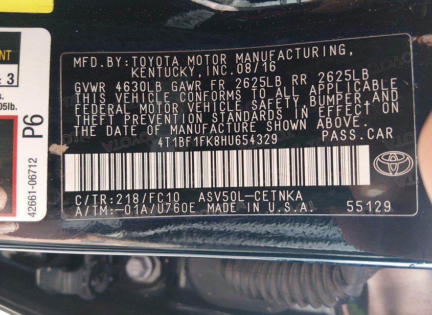 - VIN: 4T1BF1FK8HU654329