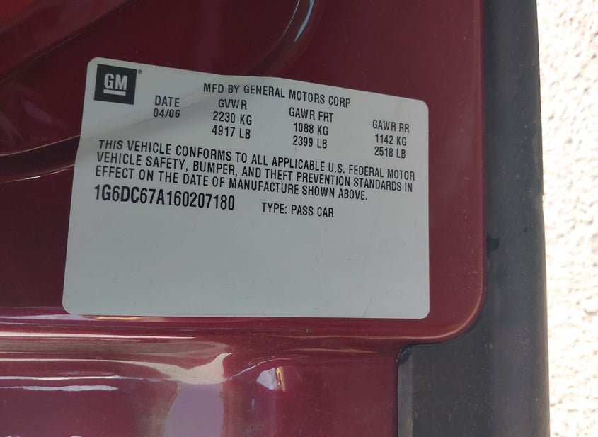 - VIN: 1G6DC67A160207180