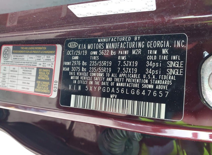 - VIN: 5XYPGDA56LG647657