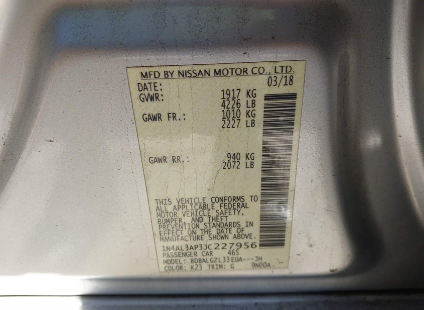 - VIN: 1N4AL3AP3JC227956