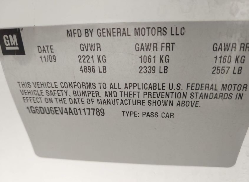 - VIN: 1G6DU6EV4A0117789