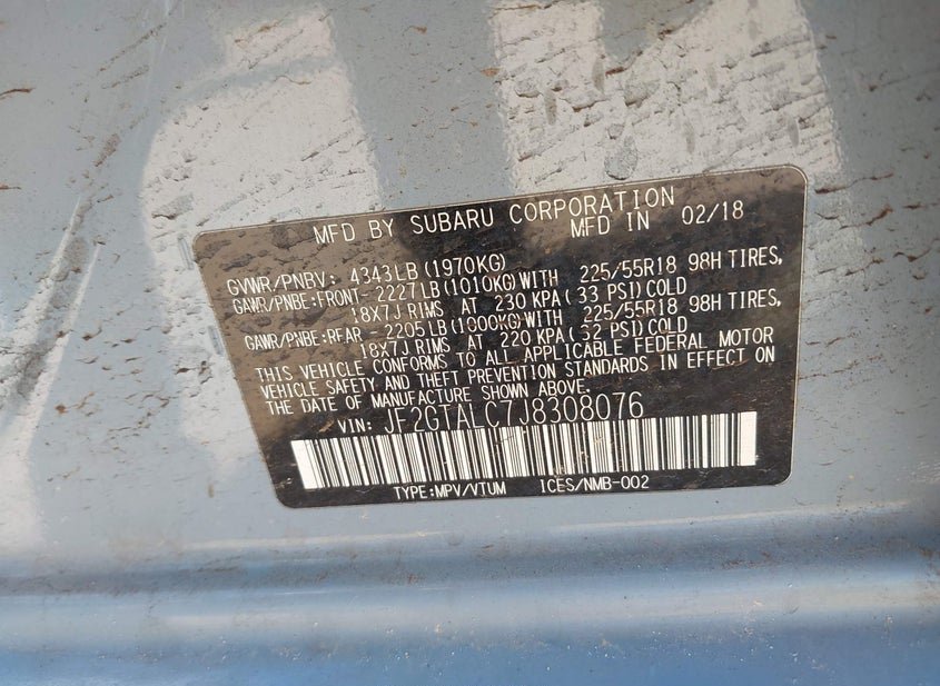 - VIN: JF2GTALC7J8308076