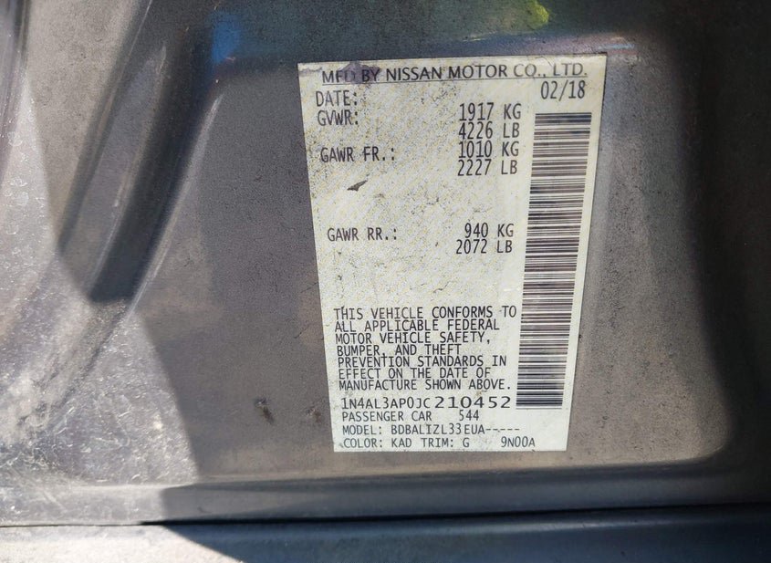 - VIN: 1N4AL3AP0JC210452