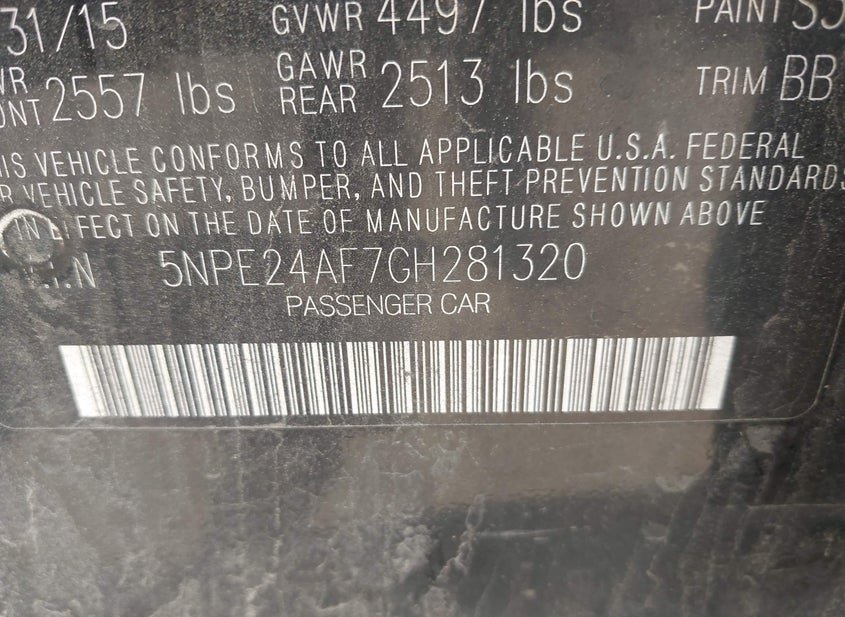 - VIN: 5NPE24AF7GH281320