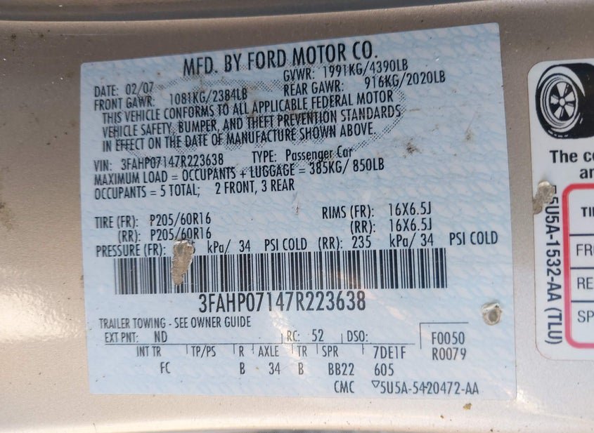 - VIN: 3FAHP07147R223638