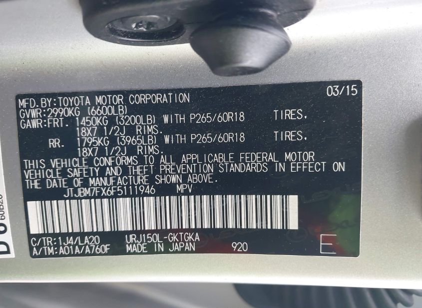 - VIN: JTJBM7FX6F5111946