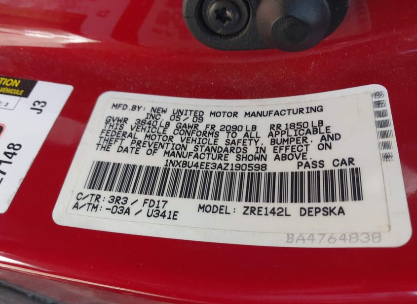- VIN: 1NXBU4EE3AZ190598