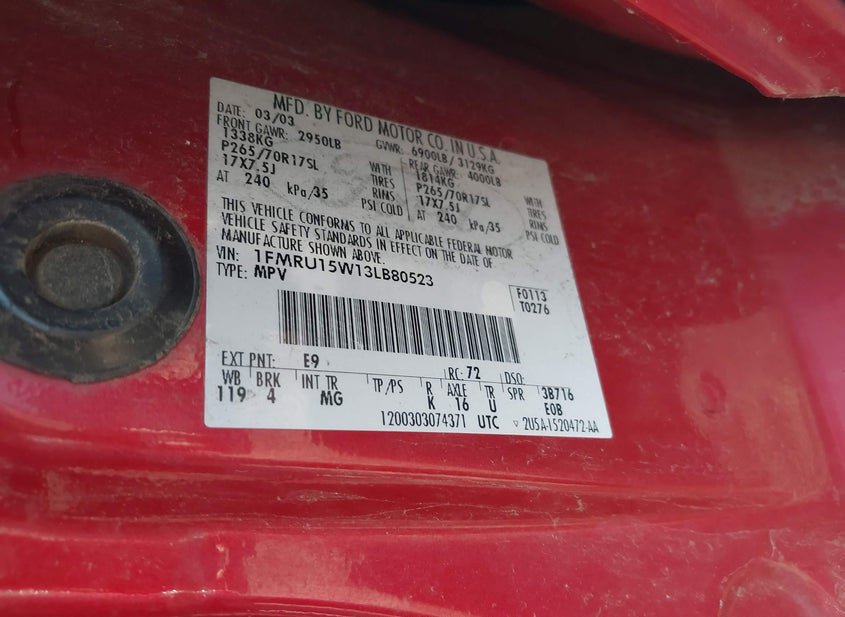 - VIN: 1FMRU15W13LB80523