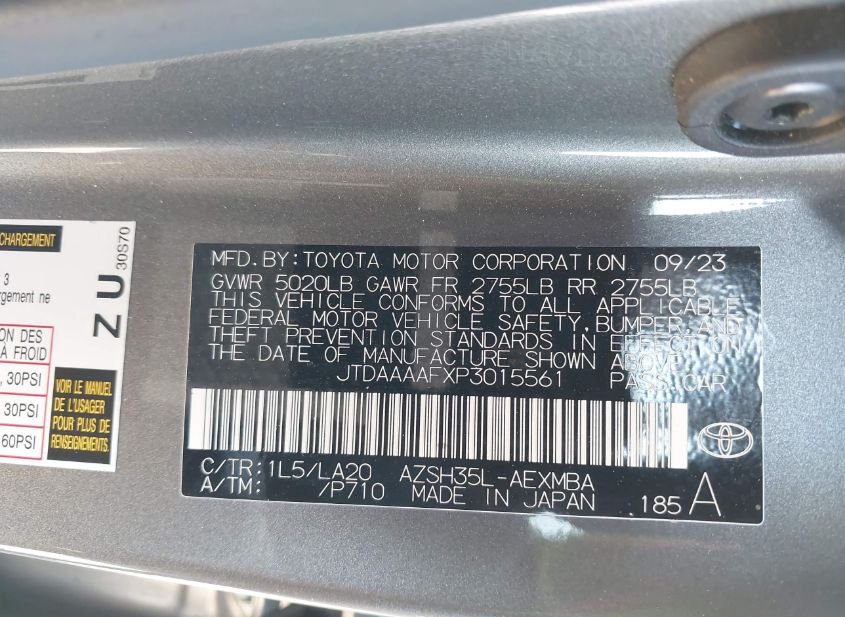 - VIN: JTDAAAAFXP3015561