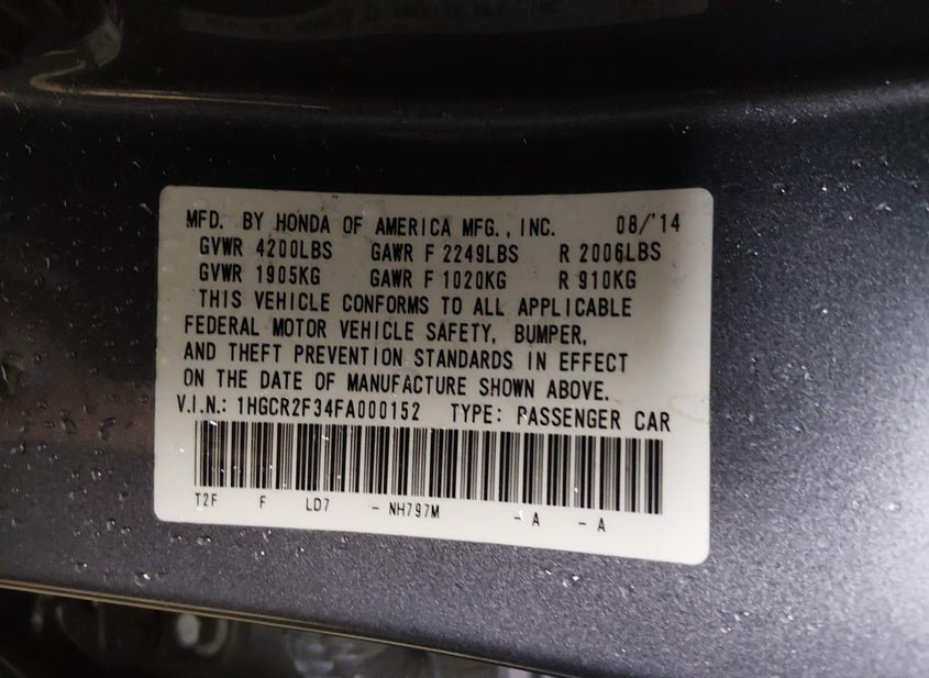 - VIN: 1HGCR2F34FA000152
