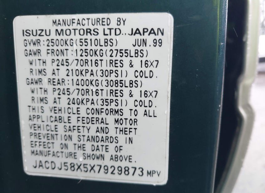- VIN: JACDJ58X5X7929873