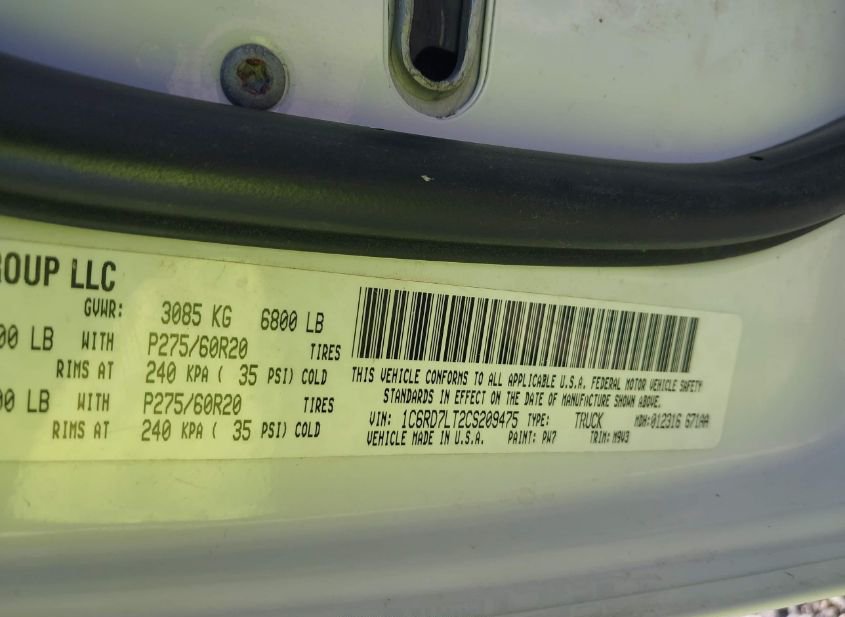 - VIN: 1C6RD7LT2CS209475