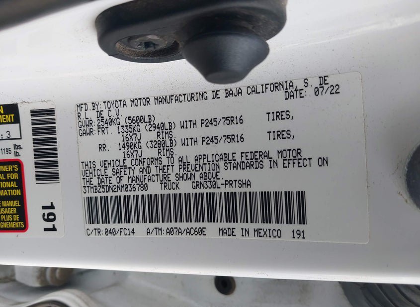 - VIN: 3TMBZ5DN2NM036780