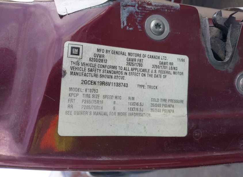 - VIN: 2GCEK19R6V1138743