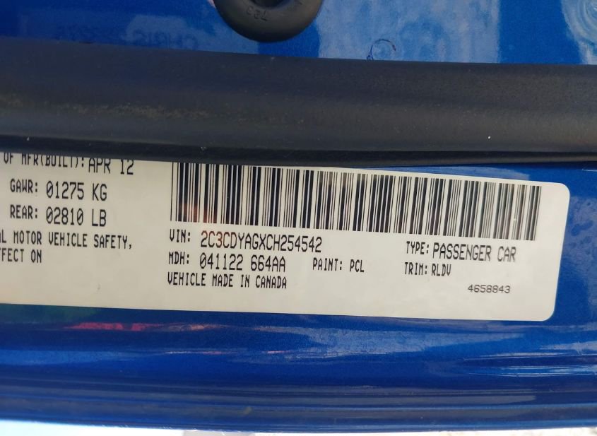 - VIN: 2C3CDYAGXCH254542